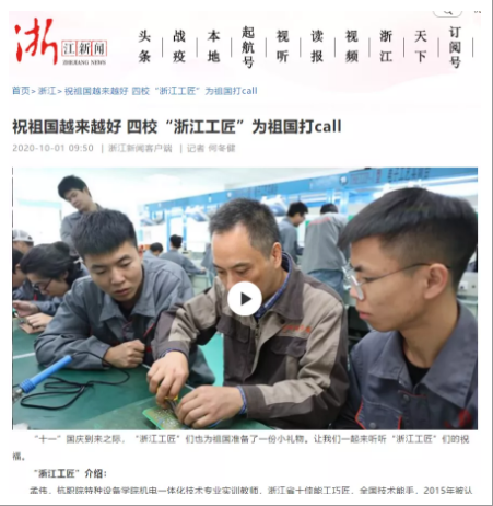 我校特种设备学院机电一体化技术专业实训教师孟伟被评为“杭州工匠”。10月1日,他作为工匠代表之一,受邀登上浙江日报新闻客户端,为祖国打Call!