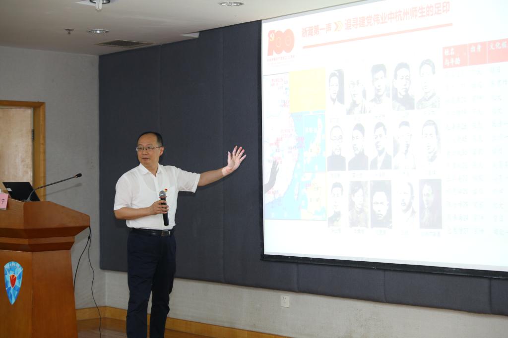 高宁结合大量史料,从浙江“红船精神”的内涵出发,作题为《浙潮第一声——追寻建党伟业中杭州师生的足印》的主题党课,系统讲解了“红船精神”在杭州教育界的具体体现。他以潮声、校魂、新潮、洗礼、盗火和牺牲等六个篇章,全面回顾了20世纪初期以来,在杭州、在浙江教育界涌现出的革命人物的感人事迹,以及他们在建党伟业和革命事业中所做出的重大贡献,生动再现了这些教育界先贤们激情燃烧的岁月、坚定前行的历史片段以及深厚笃定的家国情怀。高宁呼吁教育战线的广大党员和肩负时代使命的教育工作者们学习先贤,追寻建党伟业中杭州师生的足印,为党育人、为国育才,做到立德树人、怀抱初心、不忘前路,培养有理想、有信念、有格局、有视野、有情怀、有担当的时代新人,为杭州更加美好的教育做出应有的贡献。