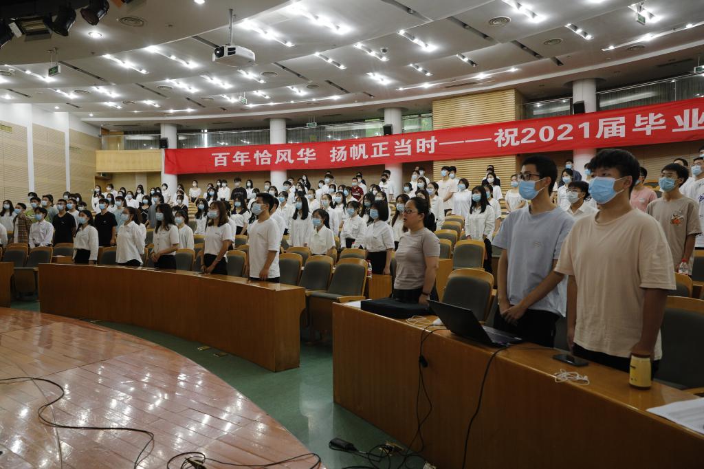国家奖学金获得者于振坤同学代表毕业生发言,从初入校园的迷茫恐惧到三年后的硕果累累,离不开母校和老师们呕心沥血的教诲和关爱,他饱含感恩之心表达了对母校的感谢、眷恋与不舍,抒发了对未来的憧憬与热情。