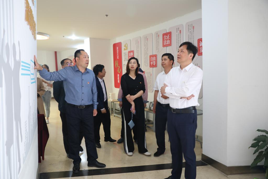 调研中,金波一行实地走访了友嘉智能制造学院和达利女装学院的党史学习教育宣传阵地,认真听取了二级学院党总支关于党史学习教育开展情况的汇报,围绕党史学习教育结合二级学院发展同与会人员进行了深入交流。