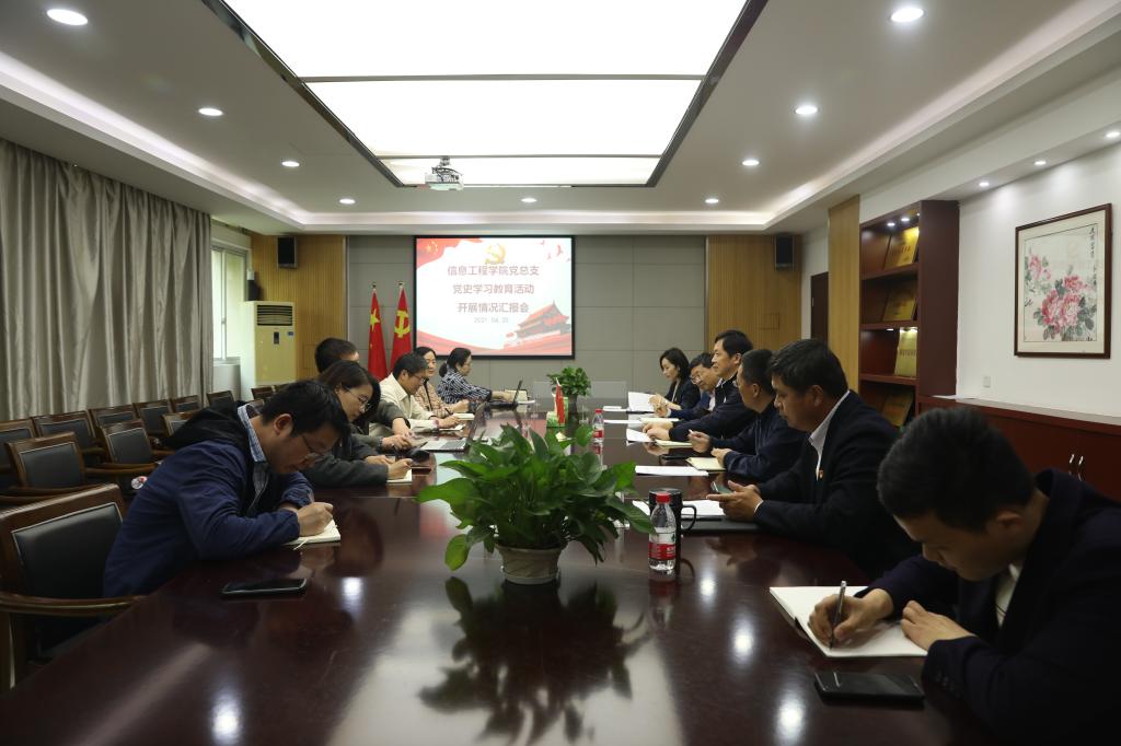 为推动党史学习教育走深走实,4月20日下午,学校党史学习教育领导小组组长、党委书记金波来到生态健康学院和信息工程学院,就党史学习教育开展情况进行调研指导。学校党史学习教育领导小组副组长、党委副书记陈泉淼,党委委员、组织部长麻朝晖,党委委员、宣传部长程利群,机关党总支书记何霞红陪同调研,生态健康学院和信息工程学院领导班子成员、党支部书记分别参加调研座谈。