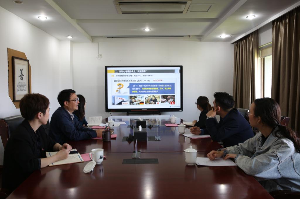 会上,楼晓春对兰礼明一行的到来表示热烈欢迎,并从概说杭职、高职办学国际化之“类型思考”“引进来”“走出去”四个方面简要介绍了我校的基本概况及国际化建设理念。兰礼明介绍了康泊仕教育科技(浙江)有限责任公司的基本情况,并分享了康泊仕教育在国际合作领域的经验和成果。随后,双方就优质教学资源输出、中资企业员工培训、留学生培养、国际科研平台筹建等内容进行了深入地交流等内容进行了交流。