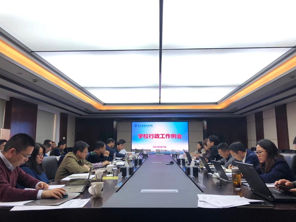 4月12日下午,学校召开了4月行政工作例会。校长徐时清、党委副书记陈泉淼、副校长金徐伟,二级学院院长和行政部门负责人参加会议。徐时清主持会议。