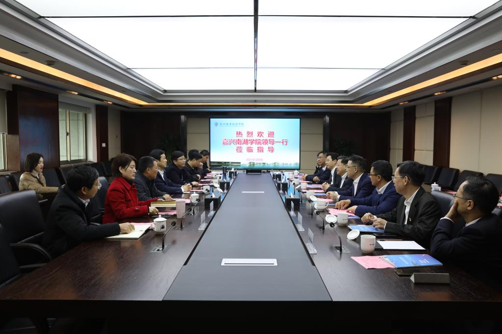 3月9日上午,嘉兴南湖学院党委书记盛付祥、校长贾文胜率领学校全体党政领导班子成员来访。我校党委书记金波、校长徐时清等学校全体党政领导班子成员参与接待。