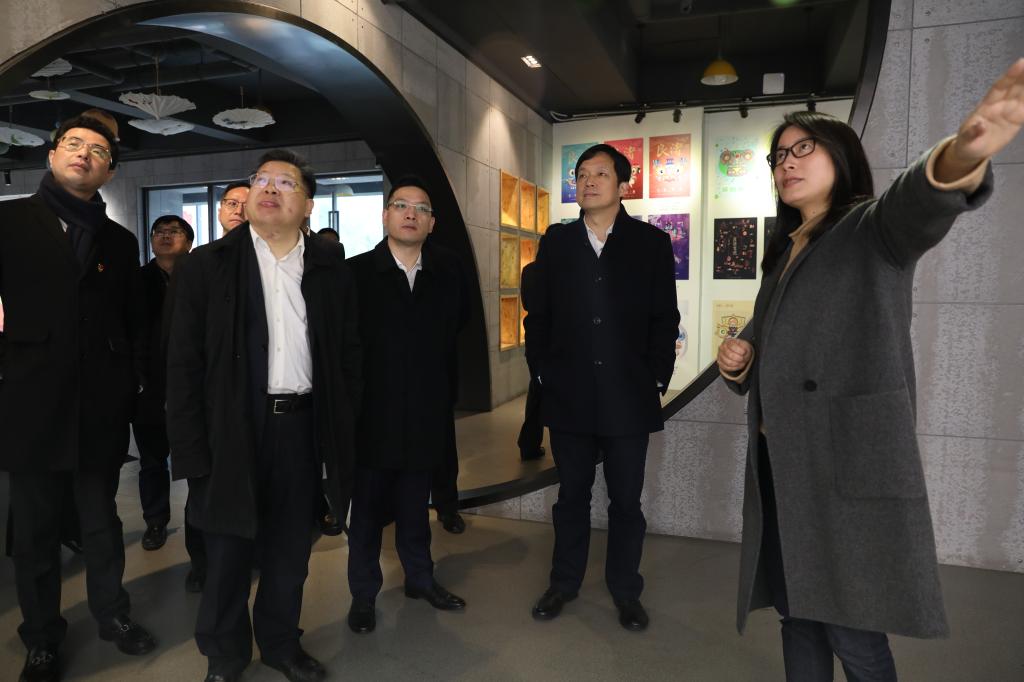 盛付祥、贾文胜一行在金波、徐时清等陪同下,共同参观了友嘉智能制造学院、学校实训中心暨杭州市公共实训基地、达利女装学院、特种设备学院、动漫游戏学院、创业园和浙乡非遗馆,实地考察了校企共同体建设和校园文化建设情况。
