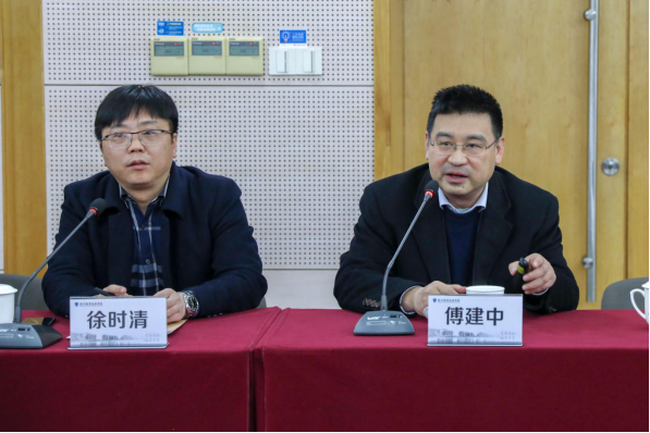 傅建中教授围绕“对接十四五规划”、“对接重点领域”和“项目申报要点”三个方面介绍了科技项目主动设计的思考路径和关键点,并就申报材料中的关键技术凝练、预期目标设置、经费预算与使用等要点跟老师们进行了交流。最后,徐时清对傅建中教授的到来表示欢迎,并对他深入浅出的讲解表示感谢。