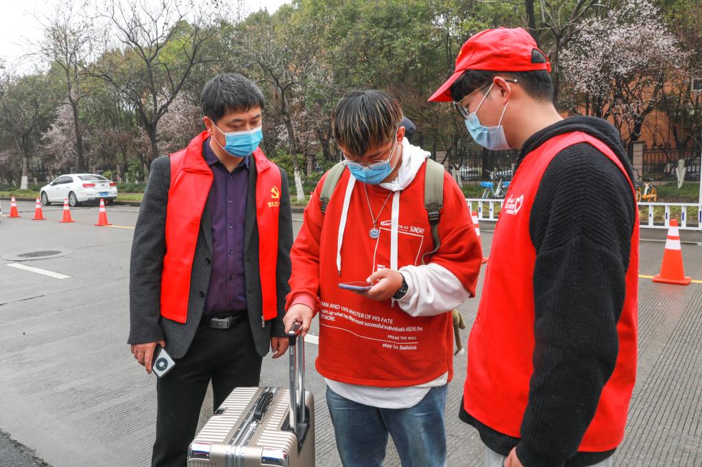 学生返校前,各学院落实各项疫情防控和返校报到工作安排,加强返校学生的审核,提醒学生和家长如实、规范填写《学生健康申报表》,知晓返校报到的相关注意事项;精准筛查学生的健康状况、旅居史、接触史等。为了实现错峰报到,学校分别设置了南门、东门、含晖苑三个报到点,每个点都规范设置了排队区,临时休息区,验码区,测温区,体温复测区。