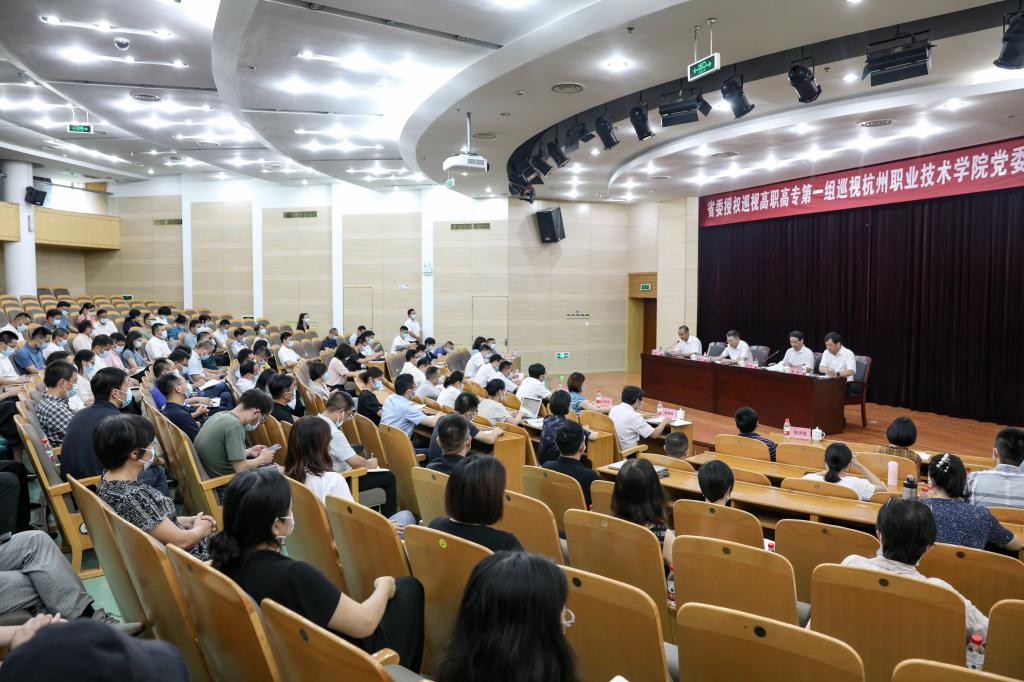2021年9月2日,省委授权巡视高职高专第一组向杭州职业技术学院党委反馈巡视情况。市委常委、纪委书记、市委巡察工作领导小组组长陈擎苍出席向杭职院党委书记金波的反馈会议和向杭职院党委领导班子反馈会议,对巡视整改提出要求。陈擎苍向金波传达了省委书记专题会议、市委书记专题会议精神,省委授权巡视高职高专第一组组长方顺才代表授权巡视组分别向金波和杭职院党委领导班子反馈了巡视情况。金波主持领导班子反馈会议并作表态讲话。
