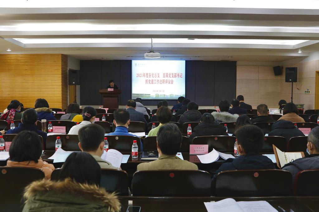 为进一步加强我校基层党组织建设,强化大抓党建、重抓党建、严抓党建鲜明导向,1月11日下午,校党委在行政楼117会议室召开2021年度党总支、直属党支部书记抓党建工作述职评议会。校党委书记金波,党委委员、副校长楼晓春、程利群,各党务部门负责人、党员代表等50余人参加会议。会议由党委委员、组织部部长麻朝晖主持。