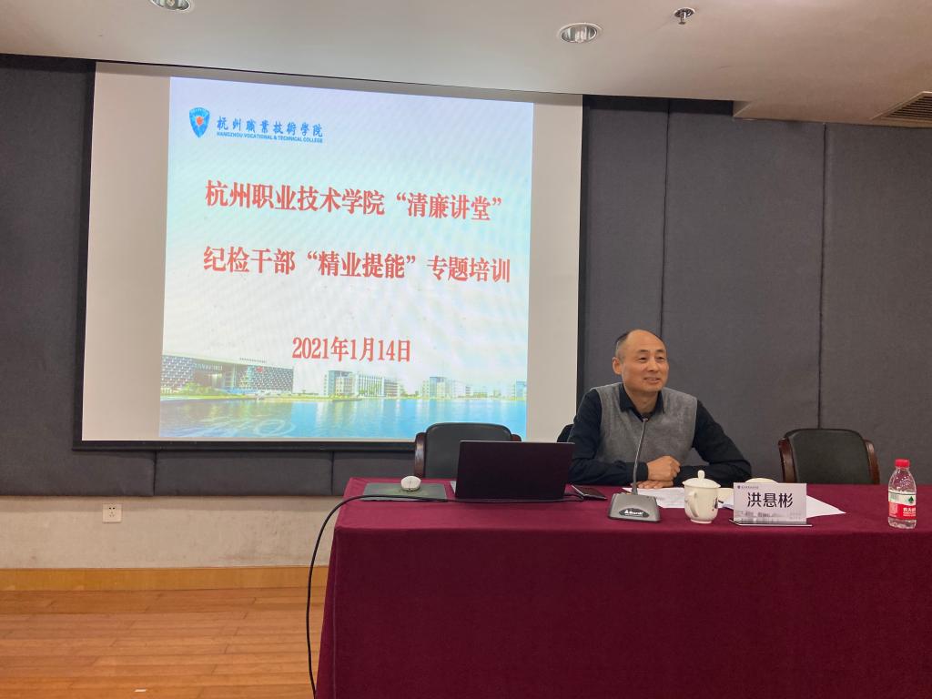 市纪委监委派驻市教育局纪检监察组副组长洪悬彬受邀作纪检工作专题报告,从典型腐败案件入手分析了当前党风廉政建设和反腐败工作的重要性和紧迫性,梳理了十八大以来纪检工作的新思想、新举措,结合新时代新要求对学校纪检工作开展作出指导。洪悬彬强调,纪检机关要坚守政治监督根本定位,坚持问题导向,紧盯监督重点“四个关键”,运用好“四种形态”,高质量推进专项监督检查,确保全面从严治党落到实处。纪检干部要提升政治监督能力水平,在强化自我监督、自我约束上当好排头兵,边学习边调研,边工作边总结,发挥应有的作用。
