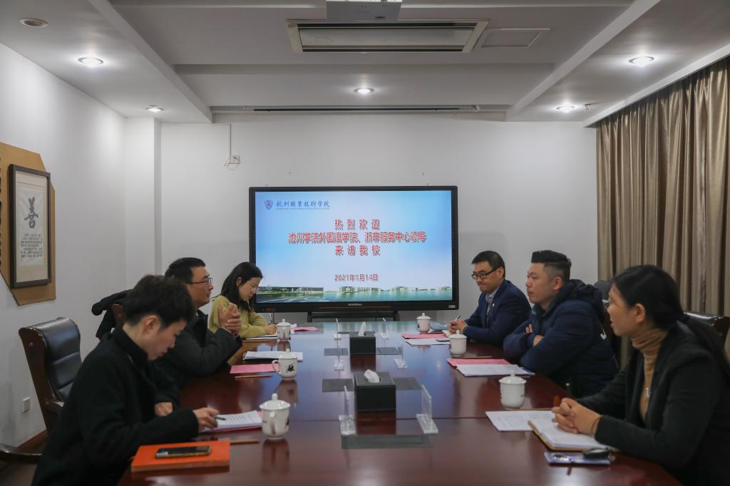 1月14日下午,浙非服务中心副主任谢巧燕、陈纽约,池州学院外国语学院法语专业负责人,中国法语教学研究会池州区理事赵清曦来访我校。副校长楼晓春及国际交流合作处相关负责人参与接待。