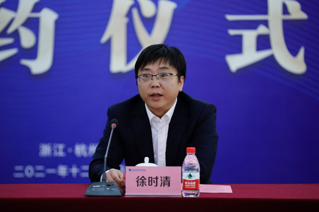 徐时清代表学校致欢迎辞,并介绍了学校办学发展情况。他表示,当前学校正以“双高”建设为契机,奋力举办职业本科教育,加快实现高质量发展。此次共建产业学院是学校探索职业教育多元化发展模式的创新之举,签约将开启四方合作、发展共赢的新起点、新征程、新希望。他强调,为深化推进校企合作办学,探索“政园企校”产教融合发展模式创新,新成立的产业学院要着重抓好三个方面的工作:一是坚持系统设计,完善组织结构与管理模式,科学合理制定人事、财务、资产、教学和科研管理制度;二是坚持示范引领,创新一体化运行机制,打造高水平产业学院;三是坚持服务发展,努力把产业学院打造成为职业教育“政园企校”跨界合作、服务区域产业和经济高质量发展的典范。
