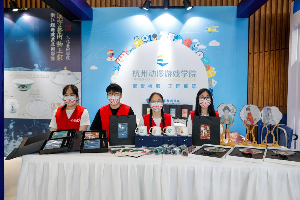学校一直重视在课程教学中引导学生自觉传承中华优秀传统文化,培育工匠精神。本次潮玩节杭职学子创作了“浙江诗路行”和“万物有灵”两组国风插画,在“钱塘潮”主题文创产品发布仪式上进行展示,通过融入钱塘潮、古运河等地域特色优秀传统文化资源,以传统美学为着力点,厚植家国情怀,将其践行于设计创作中,并衍生成国风系列文创作品。