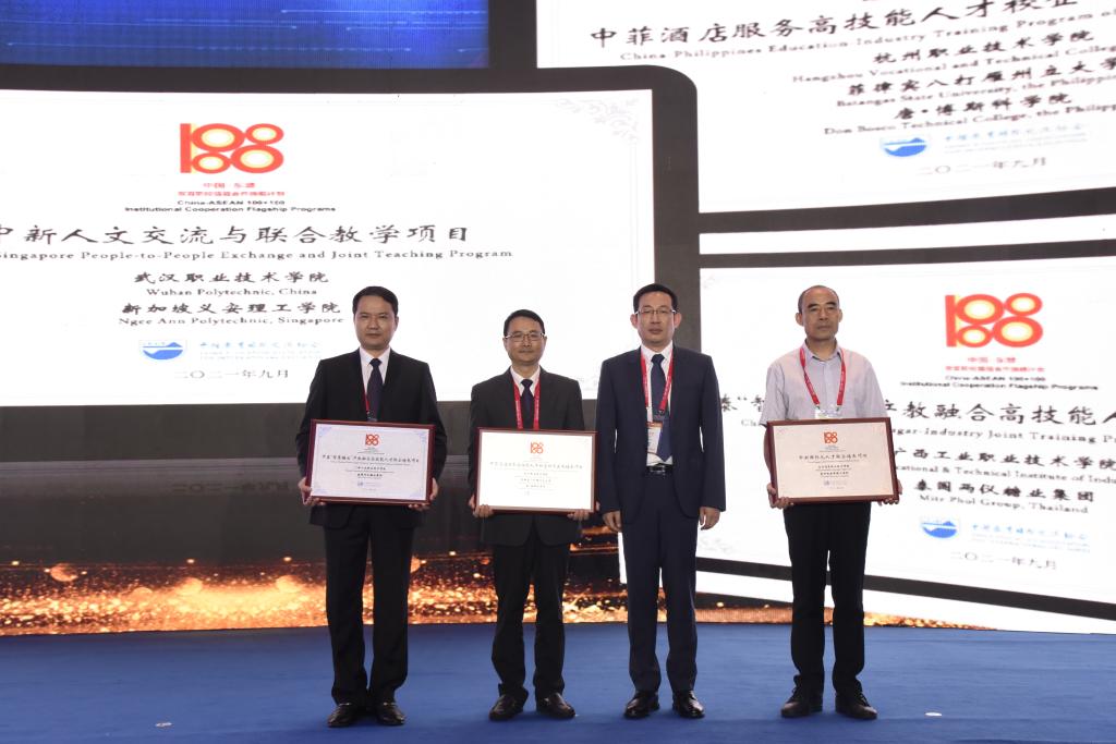 9月24日,由中国外交部、中国教育部、贵州省人民政府共同主办的2021中国-东盟教育交流周开幕,中国-东盟职业教育国际论坛暨特色合作项目成果展在贵阳同期举办,中国教育国际交流协会秘书长王永利、中国-东盟中心秘书长陈德海、教育部职业教育与成人司巡视员李春等出席论坛。论坛上发布了 “中国—东盟高职院校特色合作项目”成果汇编,并为第四批20个“中国—东盟职业院校特色合作项目”进行授牌。我校副校长楼晓春作为第四批“中国—东盟职业院校特色合作项目”入选项目院校代表参加会议并作经验成果分享。