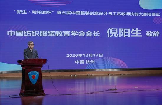 中国纺织服装教育学会会长倪阳生作闭幕辞。他高度赞扬我校在本次大赛承办工作中的表现。同时,他对本次大赛的比赛水平表示充分肯定,认为本次大赛赛出了风格,赛出了水平。他勉励职业院校服装专业教师刻苦磨练技艺,成就出彩人生。