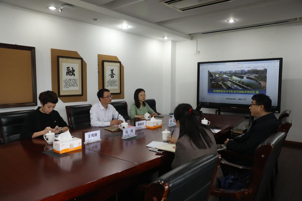 随后,双方在第五会议室座谈交流。楼晓春对宋凯的到来表示热烈欢迎,并从概说杭职、高职办学国际化之“类型思考”、杭职办学国际化之“引进来”,以及杭职办学国际化之“走出去”四个方面简要介绍了学校的基本概况及国际化建设理念,并表示学校将积极开展对外职业教育交流与合作,服务浙江企业“走出去”,助力“一带一路”建设。宋凯简要介绍了有色金属近年来产业“走出去”的现状与基本诉求,并就现阶段企业的需求和困境做了具体介绍。他对我校鲜明的办学特色和成效给予了高度评价,对推进与我校的合作表达了浓厚的兴趣。
