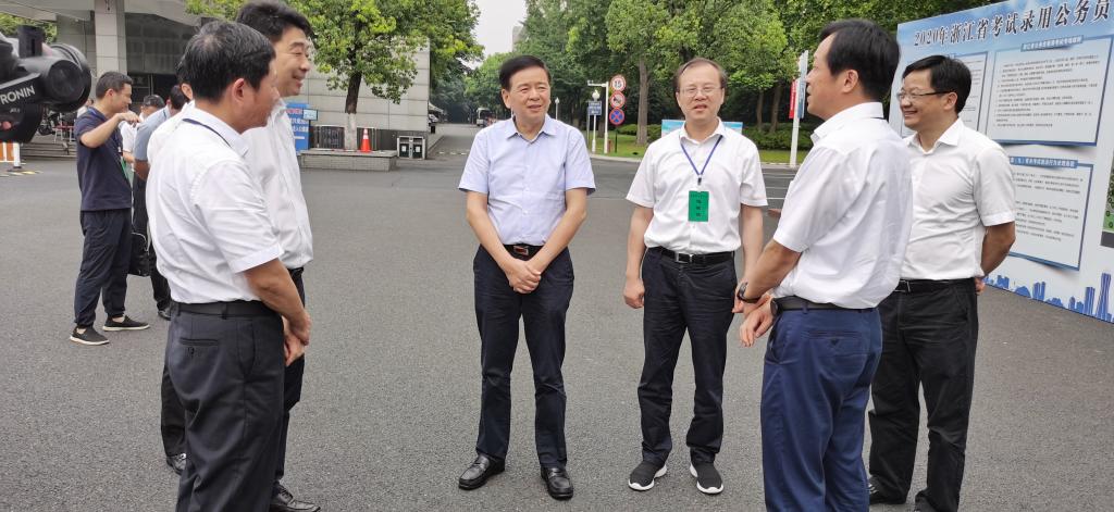 7月26日,2020年浙江省考试录用公务员笔试开考,我校是考点之一,设有60个考场。当天上午,省委常委、组织部部长黄建发,省委组织部副部长、省公务员局局长胡旭阳等一行专程来我校实地巡考。市委常委、组织部部长毛溪浩,杭州市副市长、杭州钱塘新区党工委书记柯吉欣,钱塘新区管委会主任何美华,市委组织部副部长、市公务员局长仰中旻等有关领导,我校党委书记金波、校长贾文胜等陪同巡查。
