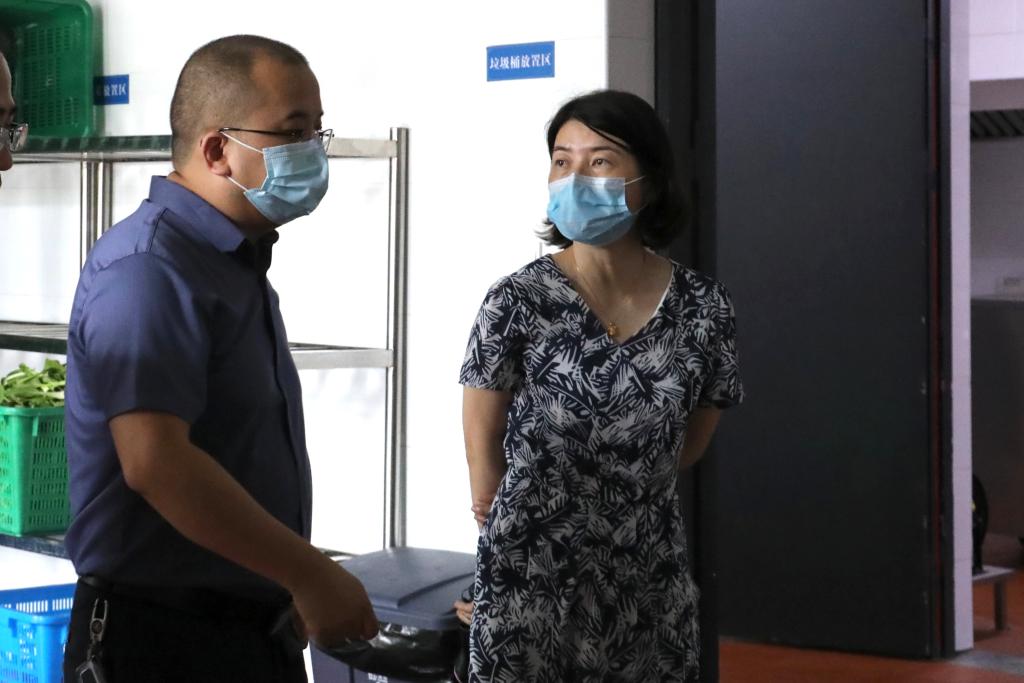 期间,金徐伟、钱江等一行人先后实地检查了学校新学生食堂、教工食堂,仔细检查食材采购、储存、加工和食品留样、人员健康管理、冷链管理、餐具及场所消毒等重点环节。