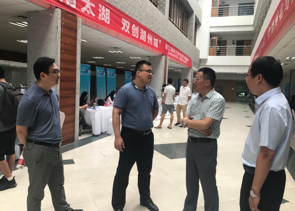 6月8日上午,杭州职业技术学院-恩施职业技术学院联合举办第一场线下招聘会——湖州市重点骨干企业专场招聘会在我校学生活动中心一楼大厅举行。湖州市人力资源和社会保障局副局长郭连伟带着湖州6个区县人社局相关工作人员与企业HR一行47人,我校党委副书记陈泉淼、学工部部长江平及二级分院党总支书记等领导到现场指导,并与用人单位和毕业生们进行了亲切的交流。
