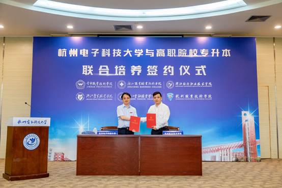 5月28日,我校与杭州电子科技大学专升本联合培养试点协议签约仪式在杭州电子科技大学举行,我校校长贾文胜、副校长陈加明出席了签约仪式。