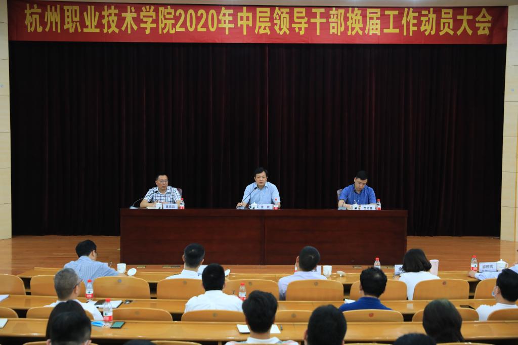 5月18日,我校在行政楼报告厅召开中层干部换届工作动员会。全体校领导班子成员、中层干部、党支部书记、高级专业技术职务人员代表、民主党派负责人、教代会主席团成员等参加会议。会议由校长贾文胜主持。