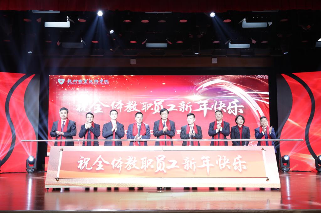 12月30日下午,踏着2019年的尾声,我校如约举办了2020教工迎新文艺汇演。学校党委书记金波,校长贾文胜,校党委副书记陈泉淼,副校长陈加明,校纪委书记沈威,副校长金徐伟、楼晓春,党委委员、组织部部长麻朝晖,党委委员、宣传部部长程利群,与全体教职工共同参加本次晚会。