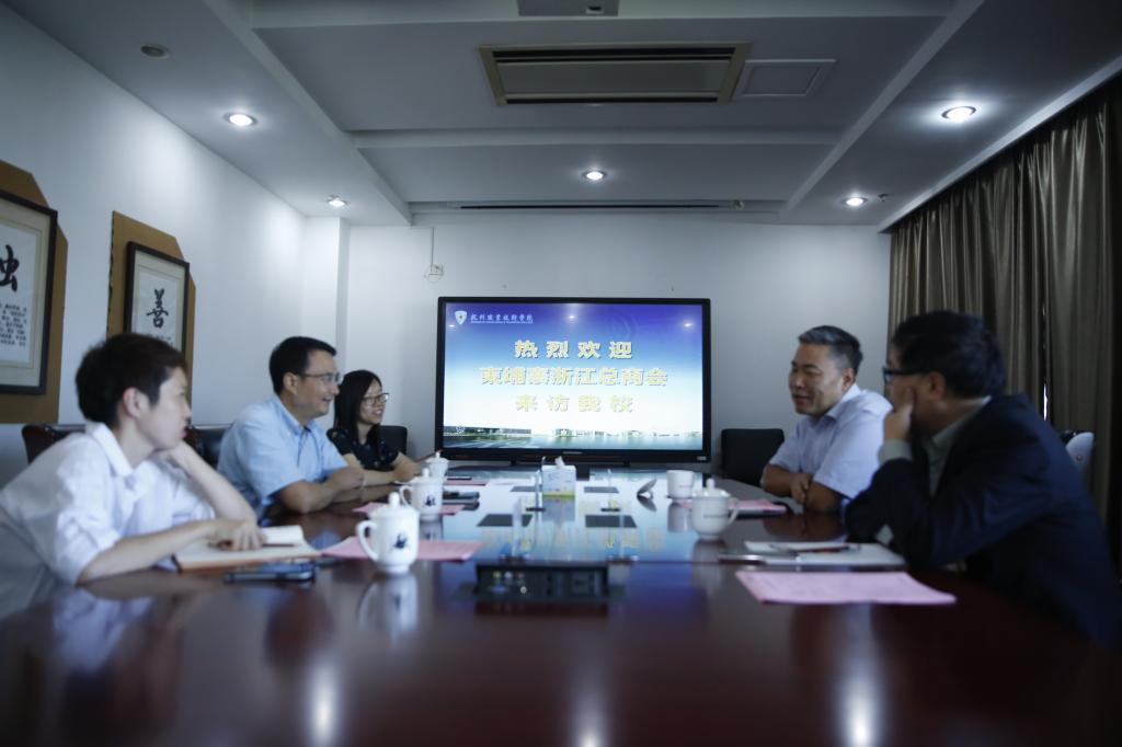 为认真贯彻落实教育部《推进共建“一带一路”教育行动》等重要文件精神,抓住“一带一路”建设重大机遇,主动融入和服务“一带一路”倡议。9月18午,柬埔寨浙江总商会副会长赵普洲在浙江省商务厅驻新加坡(亚洲)代表张汉东老师的引荐下来访我校。我校副校长楼晓春及相关部门负责人共同参与接待。