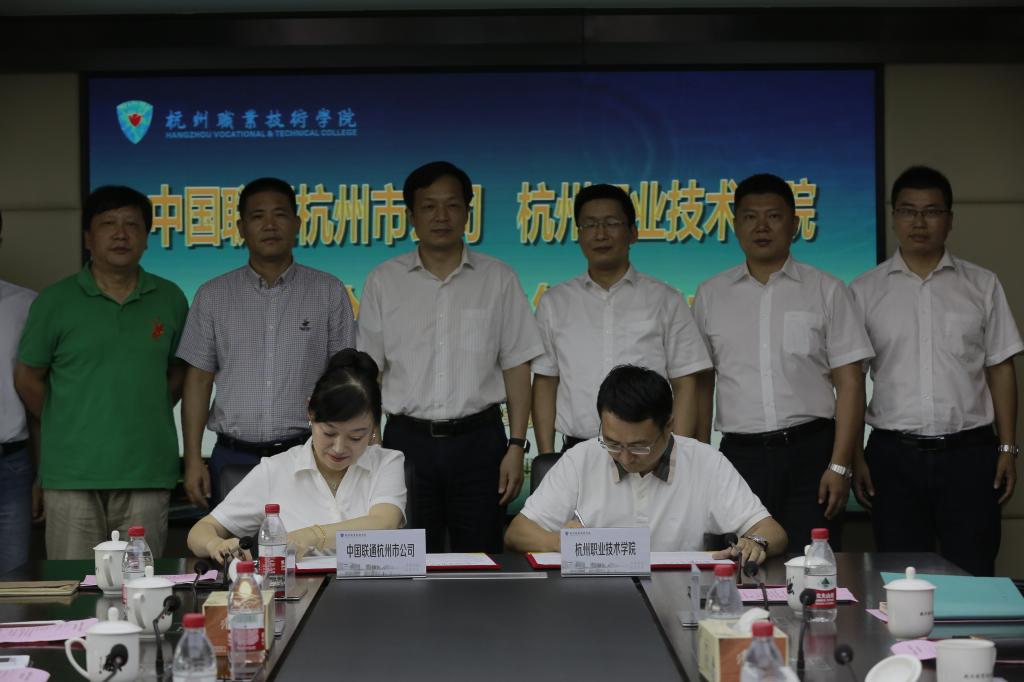 9月11日下午,杭州职业技术学院与中国联通杭州市公司战略合作签约仪式在学校第一会议室举行。