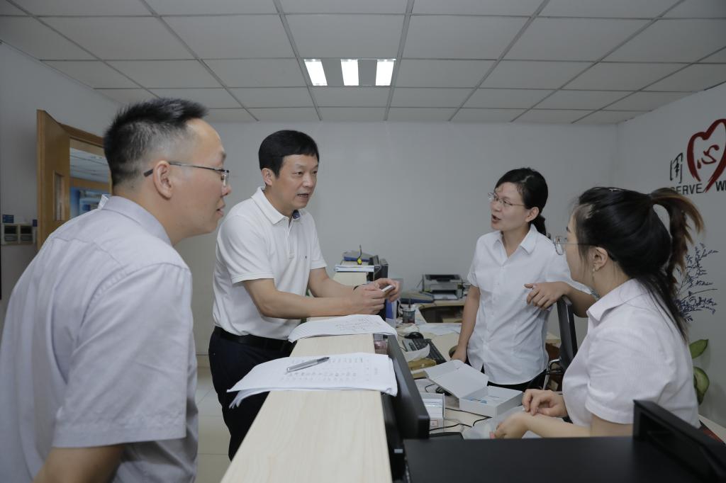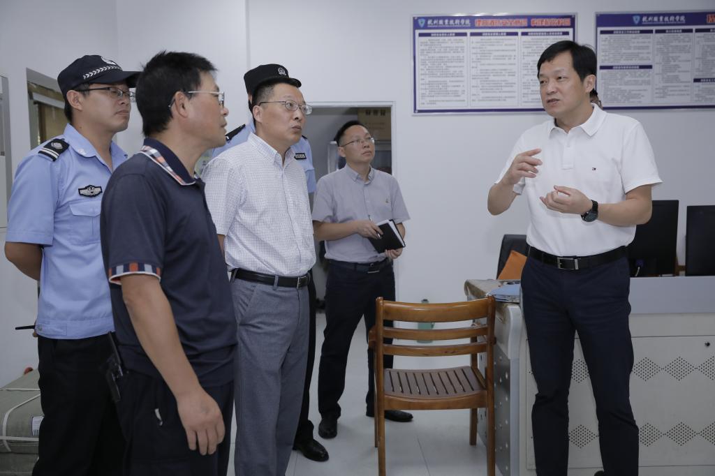 97日,新学期开学第一天,党委书记金波、党委副书记陈泉淼共同走访各职能部门,实地检查指导开学相关准备工作。党政办、党委宣传部等相关人员陪同。