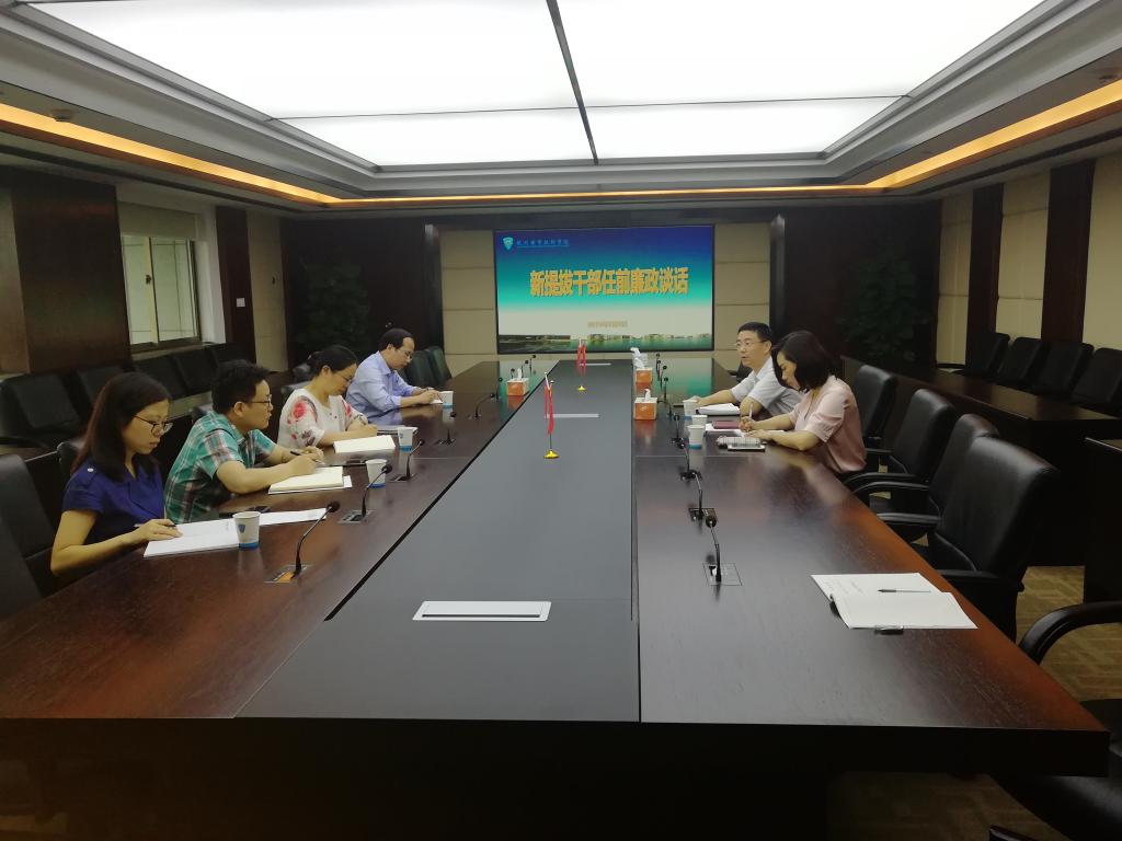 73日上午,我校在行政楼第一会议室学校组织新提拔干部任前廉政谈话。学校党委委员、纪委书记沈威、纪委副书记韩亮以及我校近期提拔的处级干部参加。