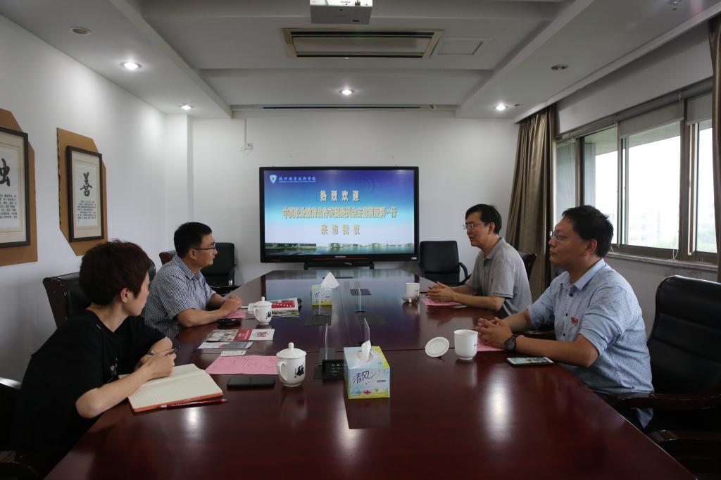 双方在行政楼第五会议室进行了座谈交流,首先,楼晓春对黄亚辉一行的到来表示欢迎,并简要介绍了学校概况。黄亚辉对于我校极具特色的跨界合作模式给予了高度赞赏。随后,黄亚辉就中英职业教育合作发展委员会做了简要介绍,并就英国的职业教育体系进行了详细说明。双方重点就中外合作办学项目、非独立法人中外合作办学机构、中英教育资源对接、专业建设、课程改革等方面展开了热烈讨论。