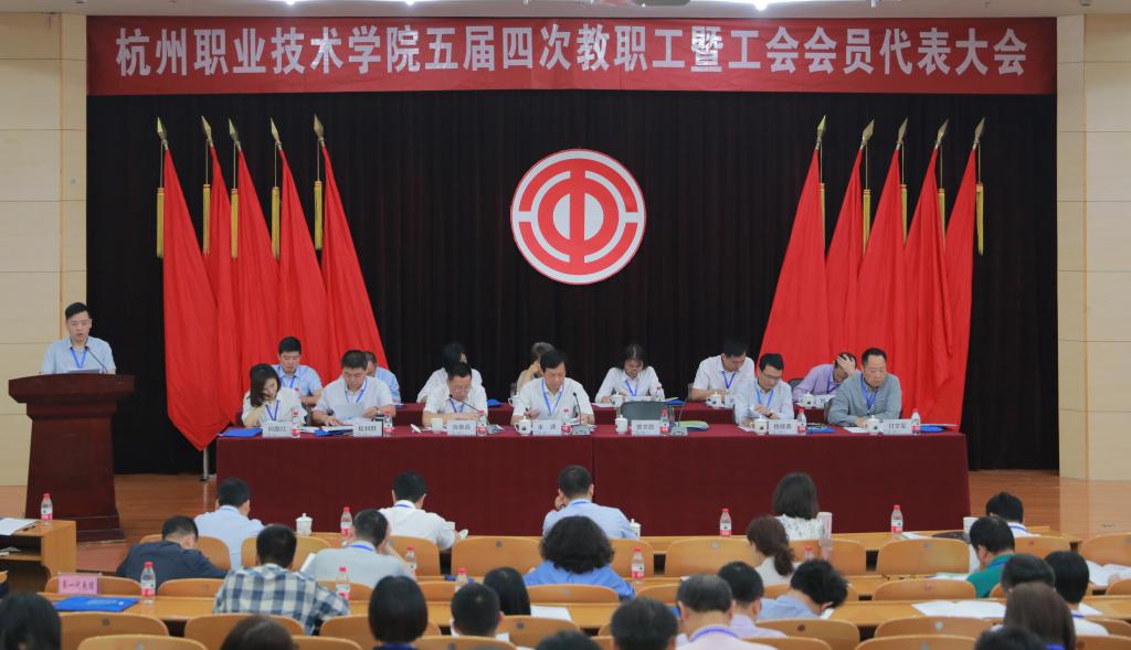 5月31日,杭州职业技术学院第五届教职工暨工会会员代表大会第四次会议在行政楼报告厅隆重举行。学校党委班子成员,来自全校各学院、部门的百名正式代表,特邀代表和列席代表齐聚一堂,共同参与学校民主管理,依法行使民主权利。