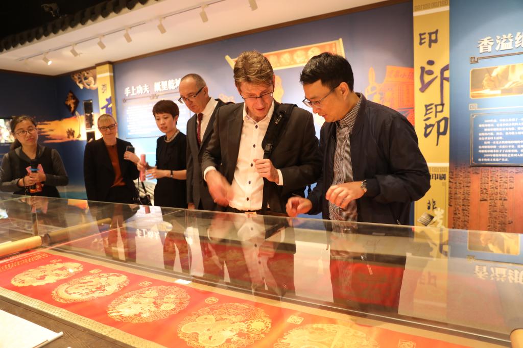 首先,来宾一行在楼晓春的陪同下参观了浙乡非遗馆和动漫游戏学院。米歇尔对非遗馆内展示的一件件文化艺术隗宝赞叹不已,对于我校极具特色的跨界合作模式给予了高度赞赏,同时也对学校文化育人,让中国传统文化得到传承的育人理念给予了高度肯定。随后,双方在行政楼第五会议室进行了座谈交流,楼晓春对米歇尔一行的到来表示欢迎,并简要介绍了我校的办学情况、专业设置、办学特色和办学成就。楼晓春表示,西澳大利亚州与浙江省是友好省份,双方合作基础优越,针对西澳优质的职业教育资源,双方可以就申报非独立法人中外合作办学机构、学生交流互访、师资培训等项目进行深入合作。