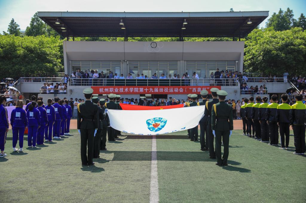 运动会的入场式成为开幕当天全场最大亮点,以各学院为单位组队的入场式阵容强大,各队集聚了本院教学和才艺资源之优势,节目丰富多彩,让在场观众眼前一亮,也赢得了看台上领导的阵阵掌声。紧接着伴随广播操音乐的响起,学生、教师广播操比赛首先进行。场上参赛运动员们精神抖擞、步伐整齐、动作到位,每一个举手、抬脚、弯腰、转身、跳跃都整齐划一,彰显出杭职师生优秀的精神风貌和体育精神。
