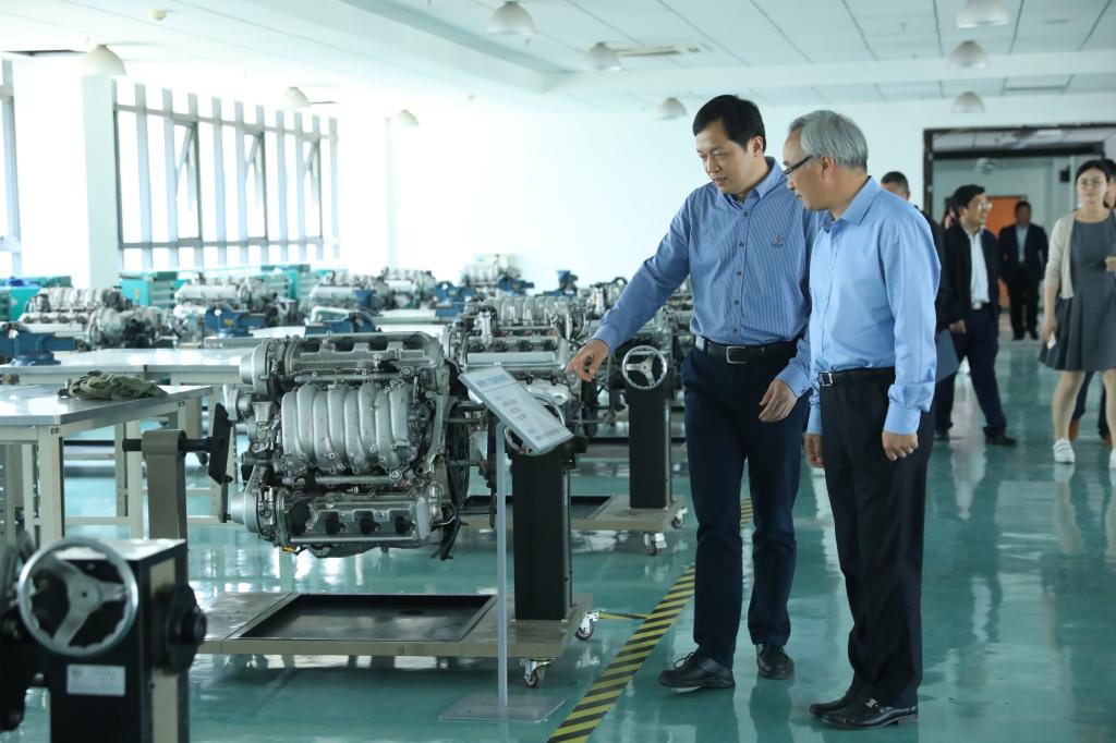 陈新华一行在金波的陪同下走访了学校实训中心暨杭州市公共实训基地,实地考察了我校基于“校企共同体”的多元发展情况。
