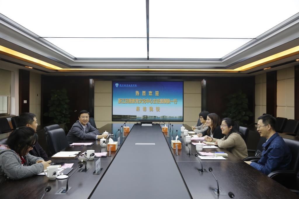 4月11日上午,浙江日报文化新闻部主任童颖骏一行4人来访我校。我校纪委书记沈威及宣传部相关负责人参与接待。