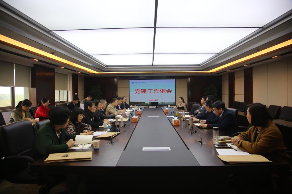 会上,各二级党组织汇报交流了近期党建工作的开展情况。陈泉淼传达了《关于开展组织工作若干薄弱环节集中整治的通知》和全省高校稳定工作专题会议精神,对二级党组织开展集中整治与学校安全稳定工作做了具体部署。沈威解读了《关于推进“清廉杭职”建设的实施意见》,要求各二级党组织根据巡查要求进一步落实整改,认真做好重要事项的监督和报备工作。