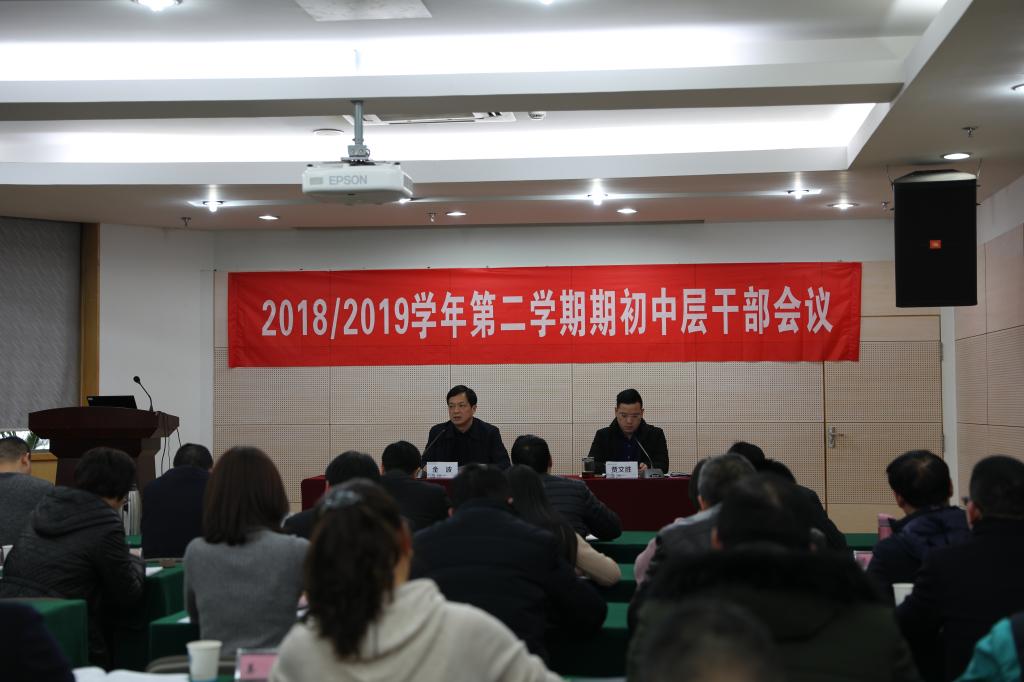 222日,学校在行政楼第四会议室召开2018/2019学年第二学期期初中层干部会议,传达学习上级有关文件和领导重要讲话精神,安排部署2019年重点工作。学校党政班子成员、全体处级干部、资产经营公司负责人及二级学院企业代表参加会议,会议由校长贾文胜主持。