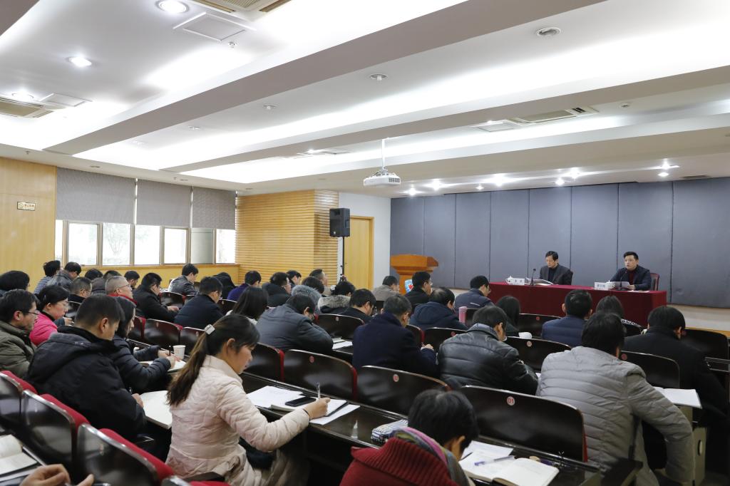 117日下午,学校在第三会议室召开期末中层干部会议,总结回顾了2018年的主要工作成绩,部署安排寒假前后工作。党委书记金波充分肯定一年来学校发展取得的成绩,感谢全校师生员工的辛苦工作和辛勤付出。校长贾文胜部署安排了寒假前后主要工作,提出了三个“收好”、三个“管好”的具体要求。校领导班子陈泉淼、陈加明、沈威、金徐伟、楼晓春、麻朝晖出席会议,会议由贾文胜主持。