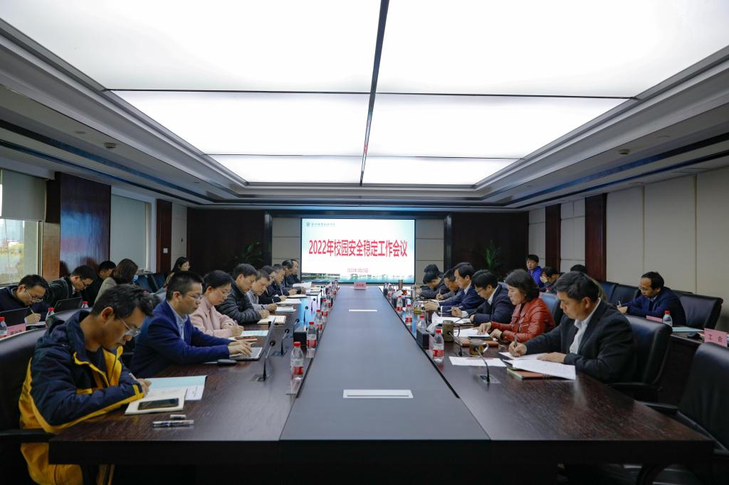 3月25日下午,学校在行政楼第一会议室召开了 2022 年校园安全稳定工作会议。校党政领导班子,各二级学院、部门负责人参加了会议,会议由副校长金徐伟主持。