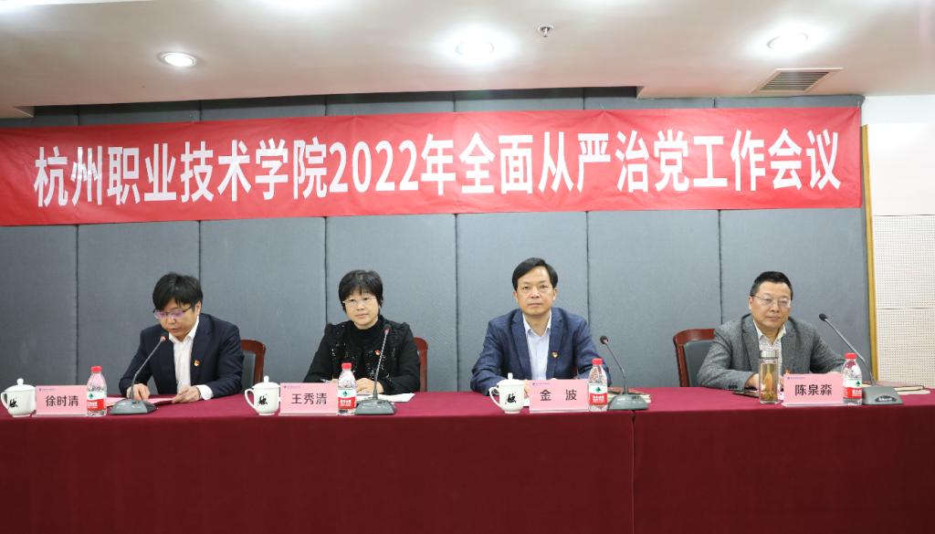 金波立足职业教育高质量发展新阶段,聚焦新时代全面从严治党工作的新形势新要求,结合学校实际,回顾总结了2021年学校全面从严治党工作取得的新成效。金波指出,2021年学校党的政治建设进一步加强,思想建设进一步抓实,作风建设进一步强化,组织建设进一步提升,纪律建设进一步严实,“清廉杭职”建设进一步增效。对标中央、省市关于全面从严治党工作的要求,我校全面从严治党工作在层层压实责任传导、党建引领作用发挥、意识形态责任落实、重点领域廉政风险防范等方面存在的问题和不足。金波强调,下一阶段,我们要坚持政治引领,全面加强党的政治建设,在学深悟透中筑牢信仰之基,提升基层党组织政治功能,做好巡视整改“后半篇文章”;要坚持“责”字当头,层层压实主体责任,扛起管党治党政治责任,有效履行监督责任,发挥领导干部表率作用;要坚持守牢底线,抓好思想阵地建设,增强思想政治教育工作实效;要坚持挺“纪”在前,强化政治监督,加强对“一把手”和领导班子监督,聚焦重大决策部署落实情况监督,优化全覆盖大监督格局;要坚持“严”的主基调,持续用力整饬四风,培树良好师德师风,加强清廉警示教育,强化廉政风险防控。以实际行动和优异的发展成绩迎接党的二十大胜利召开。