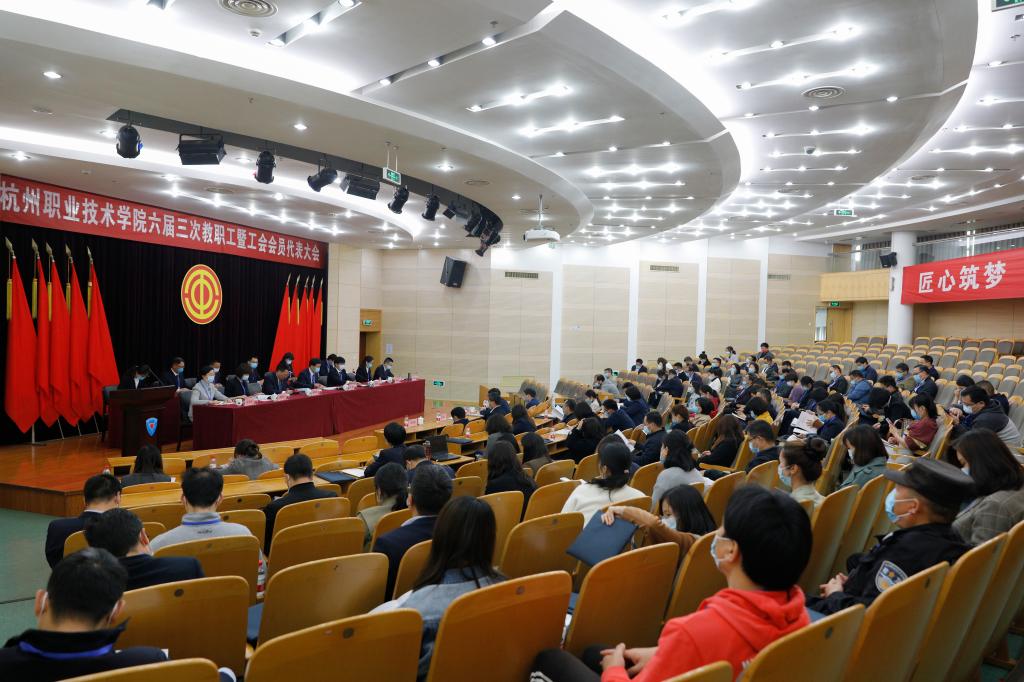 4月15日,杭州职业技术学院第六届教职工暨工会会员代表大会第三次会议在行政楼报告厅隆重召开。学校党政领导班子成员金波、徐时清、陈泉淼、楼晓春、程利群、麻朝晖,大会正式代表、特邀代表、列席代表参加大会。开幕式由校党委副书记陈泉淼主持。