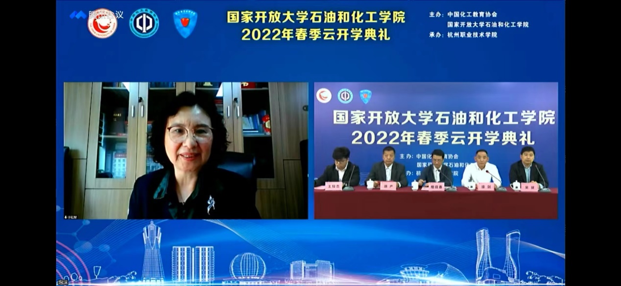4月21日上午,由中国化工教育协会、国家开放大学石油和化工学院主办,我校承办的国家开放大学石油和化工学院2022年春季新生云开学典礼在行政楼121会议室隆重举行。中国化工教育协会驻会副会长、国家开放大学石油和化工学院副院长于红军、国家开放大学石油和化工学院副院长陈炳和、我校副校长楼晓春、生态健康学院党总支副书记胡严、以及课程辅导教师代表、新生代表出席典礼,线上近3000名新生观看了云开学典礼。典礼由继续教育学院院长徐剑主持。