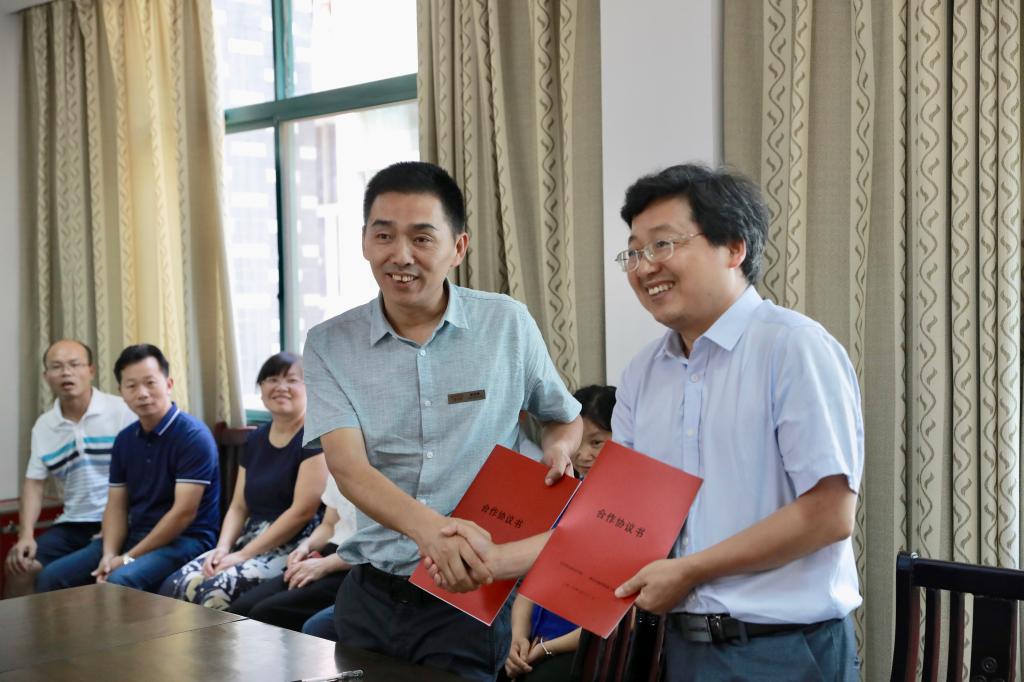 麻朝晖与姜浩强签订“校村合作”协议,金波为下姜村实践研究服务基地授牌。