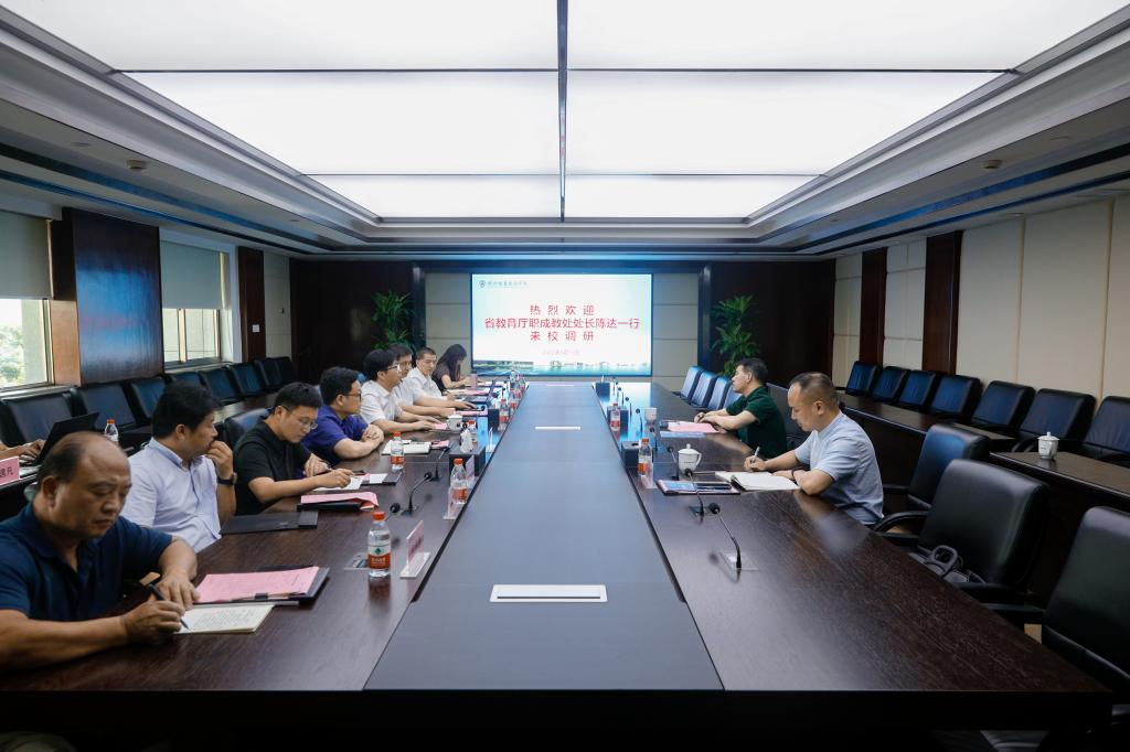 6月16日下午,省教育厅职成教处处长陈达一行莅临我校,专项调研高职院校科技成果转化、应用技术社会服务和推广工作。校长徐时清、副校长程利群,党政办、教务处、科研处等部门负责人,友嘉智能制造学院、生态健康学院、吉利汽车学院、杭州动漫游戏学院、特种设备学院等一线教师代表参与了座谈。