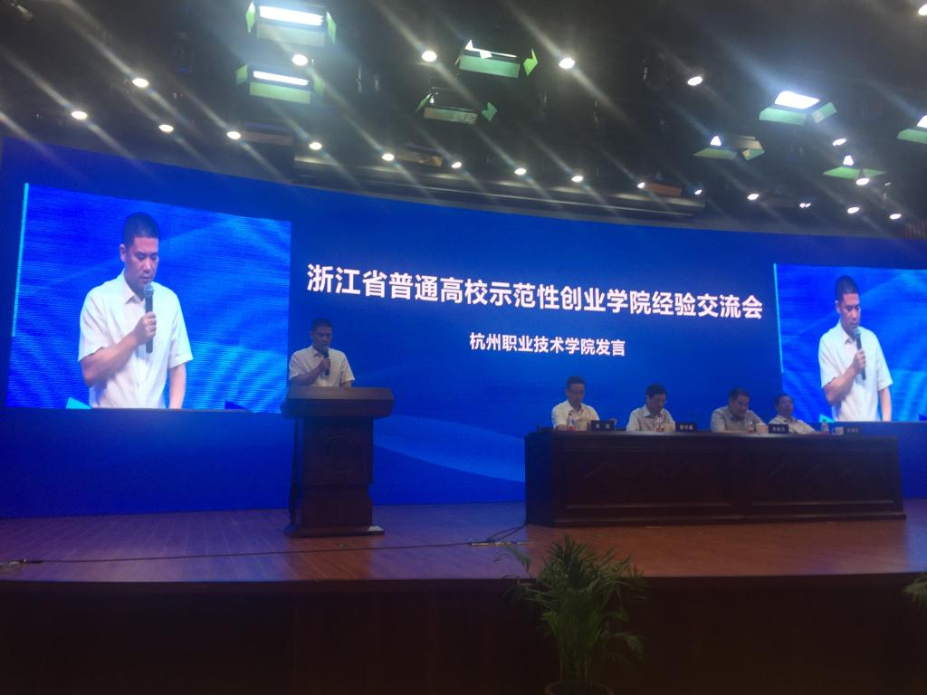 副校长陈加明代表学校作题为《创业带动学业提升就业能力》的交流发言,重点从建立健全“四阶段”渐进式创新创业人才培养体系,推出了系列创新创业保障举措,打造了区校共建、成效明显的“国家级”高职学生创业园等三个方面介绍了我校近年来深化创新创业教育改革的主要经验与做法。宁波大学、浙江理工大学、温州大学瓯江学院也分别在会上做了交流发言。