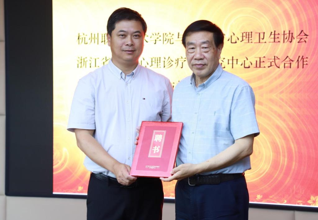 会上,赵国秋和程利群分别给我校和浙江省学生心理诊疗中心授牌,程利群为赵国秋颁发杭州职业技术学院客座教授兼心理危机干预首席专家的聘书,同时聘任傅素芬、张载福、徐方忠、林铮和宋海东五位专家为我校心理危机干预专家。