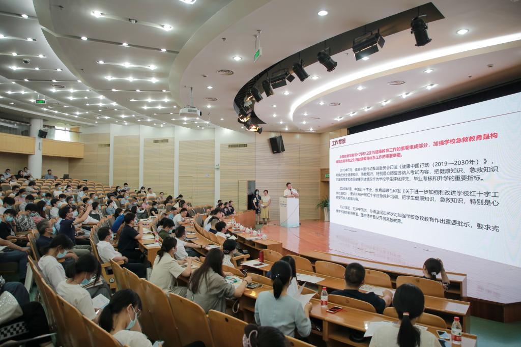 7月25日,全国学校急救教育试点工作推进会在杭州职业技术学院举行。教育部体育卫生与艺术教育司体育与卫生教育处副处长樊泽民,中国教育装备行业协会常务副会长夏国明,浙江省教育厅体卫艺处处长李建章,浙江省红十字会党组成员、专职副会长黄元龙,杭州市教育局党委委员、副局长高宁,杭州市红十字会党组成员、二级巡视员谭湘,全国校园急救教育试点工作办公室副主任李梦莹、王艳,杭州职业技术学院校长徐时清、副校长楼晓春以及浙江省各试点学校相关负责人出席会议。会议以线上线下相结合形式召开,并覆盖全国各试点校。