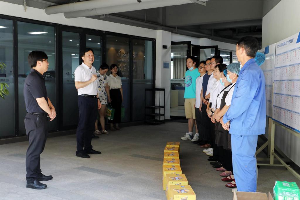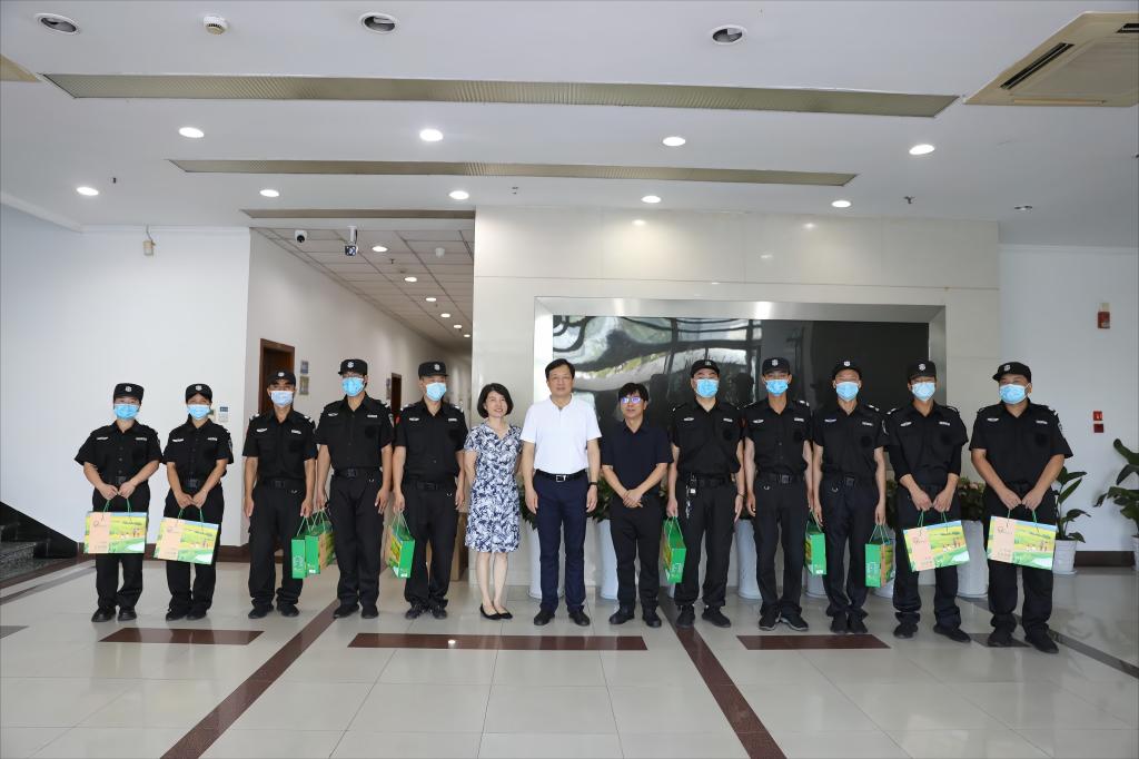 校领导先后来到学校教务处、保卫处、后勤服务中心,代表学校向暑假期间值守岗位辛勤工作的一线教职员工们致以感谢和关怀。校领导仔细了解各部门值班和保障工作情况、招生录取情况、暑期校园疫情防控实施情况及留校学生的饮食住宿和学习情况,对教务、后勤、保卫等部门教职员工兢兢业业的工作态度和无私奉献精神给予肯定,并为大家送上慰问品。