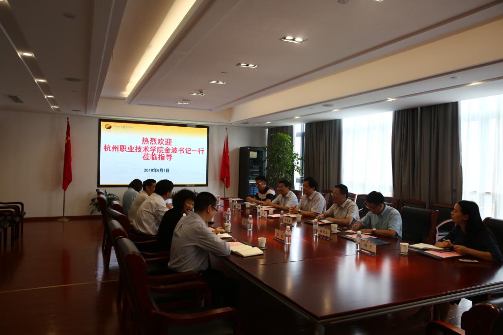 双方在会议室进行了座谈交流,毛大龙介绍了宁波职业技术学院的办学情况,重点阐释了“三化”“三跨”的发展理念、“三全”育人机制,分享了国际化办学和党建工作的实践经验。金波对宁职院一直以来给予杭职院的支持与帮助表示感谢。他表示,宁波职业技术学院在内涵建设、师资培训、国际化办学等方面走在全国高职的前列;他要求,相关部门加强学习借鉴,吸收先进经验,并将其融入工作实践;他希望,两校加强交流合作,在良好的发展基础上寻求突破,共同续写好合作篇章。双方还就全面落实从严治党、干部队伍建设、基层党建创新、意识形态工作等方面具体问题进行了深度交流。